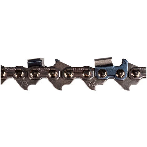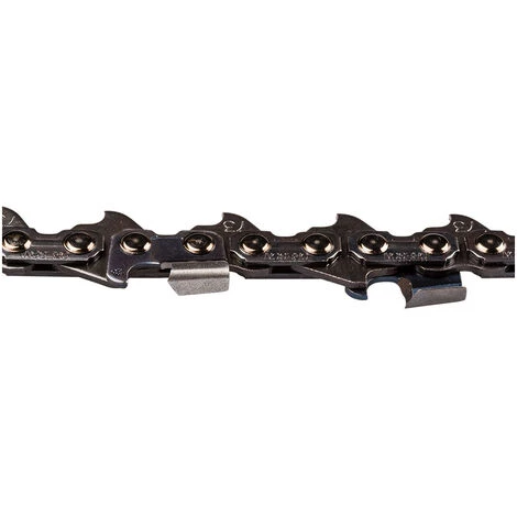 Chaîne semi-chisel à dents tranchantes légèrement arrondies. Chaîne de tronçonneuse haute performance, coupe en souplesse, pour une utilisation professionnelle.