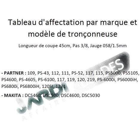 Guide Oregon Versacut 188VXLHK153 pour tronçonneuse, longueur de coupe 45cm, Pas de chaine 3/8, Jauge 058 (1.58mm), il est généralement monté avec une chaine à 64 maillons entraineurs (dents qui entrent dans le guide) sur Makita ou Dolmar (voir tableau en photo). Il remplace l’ancienne référence Oregon 188SLHK153 ou les références constructeur Dolmar 411909650, Makita 443045651 ATTENTION : Merci de vérifier le Pas, la Jauge, le nombre de maillons entraineurs de votre chaine et de respecter les modèles de tronçonneuse (Dolmar et Makita) indiqués dans notre tableau d’affectation (voir photos)