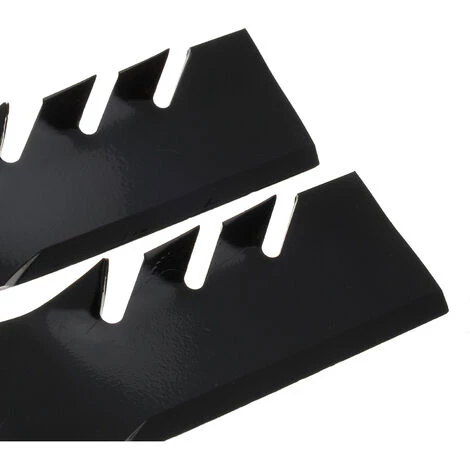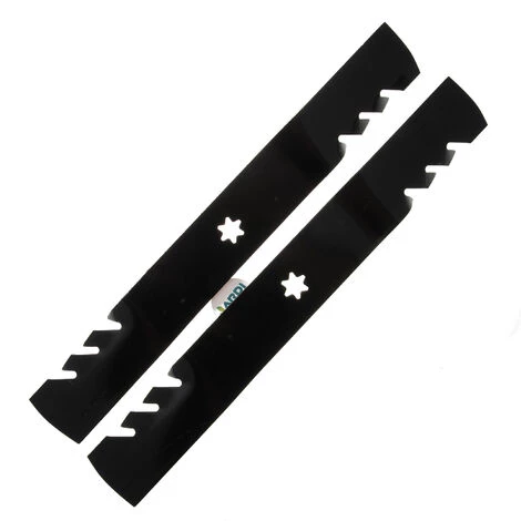 Jeu de 2 lames Oregon Gator Mulching pour tondeuse autoportée de fabrication MTD avec coupe de 96,5cm (38 Pouces) à éjection latérale. Ces lames remplacent les références constructeur 742-0610, 742-0610A, 942-0610, 742-0646, 742-0675, 742-04084 ou 942-0646. Dimensions : Longueur 49cm, diamètre des trous extérieur 8mm, entraxe 63.5mm, fixation en étoile à 6 pointes. Modèle version soufflantes ou mulching (comme à l’origine) également disponible en stock. ATTENTION : Merci de vous assurer de votre référence d’origine MTD avant de passer commande et de comparer avec nos photos et dimensions (plusieurs montages possibles)